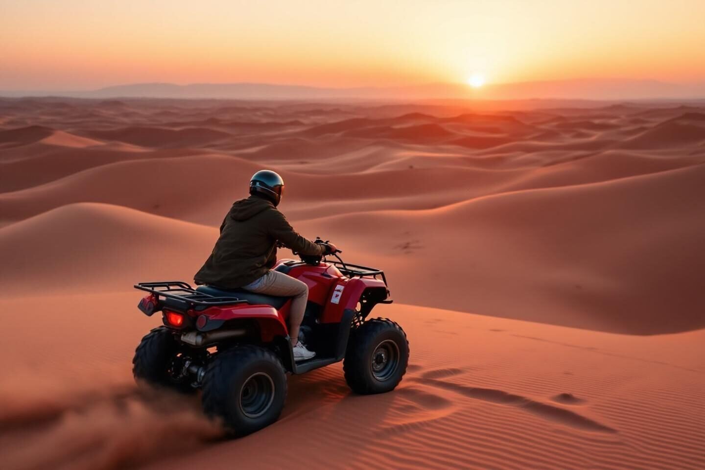 - Prestations premium : notes exceptionnelles de 4,89/5, matériel récent CFMoto, guides expérimentés, options combinées avec chameau, repas traditionnels et coucher de soleil dans le désert